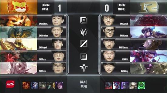 比赛进入中期,RNG利用不停的转线与SNG换塔换资源,很好的将比赛节奏拖住,双方进入了较长时间的僵持发育阶段。直到比赛进行到27分钟,SNG通过下路狐狸的一波TP支援将RNG前来gank的上野击杀,随后组织中路强开将RNG防守核心阿兹尔击杀,果断一波结束比赛,首局SNG先下一城!