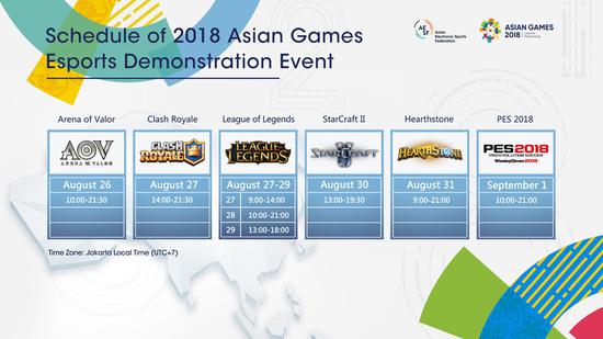 *2018亚运会电竞表演项目赛程:(时区UTC+7)