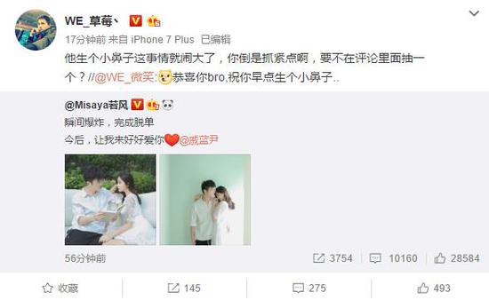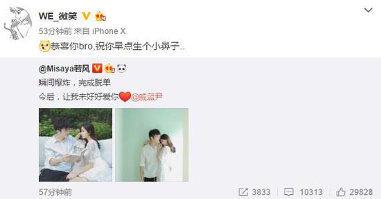 面对这一波高调秀恩爱的操作,网友也是送上了充满惊喜的祝福,更有忠实粉丝送上祝福期待早日会有小若风,继承落地金身再续辉煌!