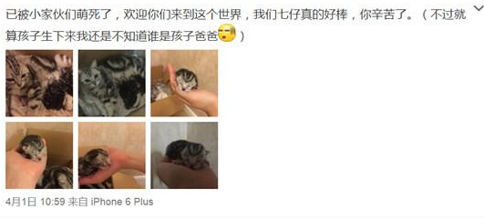 (2015年4月1日戚蓝尹就发了微博说自己家猫生了小猫咪)