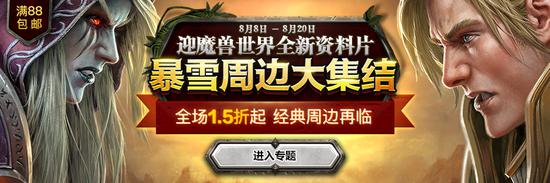 魔兽世界全新资料片《争霸艾泽拉斯》上线在即,暴雪周边商城开启了针对全场周边的专题活动,艾泽拉斯的勇士们可以在新版本之前装备自己了!