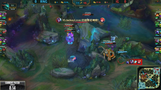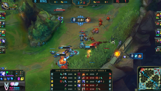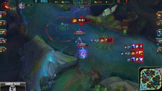 RNG一直有兵线的优势权,随着比赛时间的推移来到25分钟左右,RNG在下路推进无果之后,在河道处与IG发生团战,被IG的韦鲁斯收割,经济人头被IG反超。