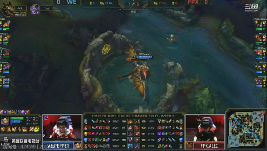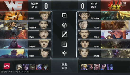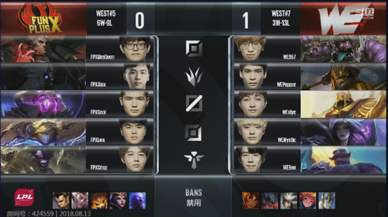 8月13日,LPL第九周第一天的比赛,WE战队在西安主场迎战远道而来的FPX战队。