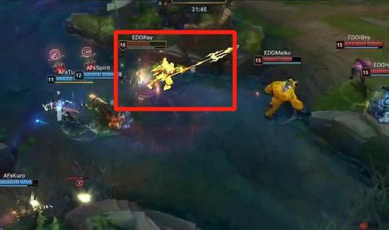 Ray在线上经常会被压制,可能是因为他当初是玩瑞文这样的英雄出道,而来到EDG后为了队伍体系,他不得不使用自己不擅长的英雄,所以在上路他很少有主动权。后来被人诟病最典型的就是他在洲际赛中的皇子EQ中按金身,被网友嘲笑为“仙人指路”,因此在EDG输了比赛后很多人都会把锅甩给他。