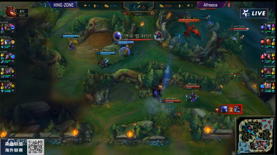 24分05秒,火龙刚刷新,大虫子往火龙处赶被瑞兹和酒桶包夹,现在的大虫子在全输出的酒桶和瑞兹面前根本扛不住很快便被击杀,少了个关键前排和爆发的上单,KZ只能放弃这条火龙抱团中路想推中路一塔,妖姬想消耗却再次被打残,洛赶过来支援控到三人,但己方霞去被发条闪现秒掉,同时又用护盾将韦鲁斯救下来,此时酒桶和瑞兹赶过来,将巨魔和没有蓝的发条留下,总体AFS打成一换三,KZ想止损却迎来了更大的损失,马后炮说一下,如果KZ拿下这条火龙两火龙后面打团还是有机会赢的,说不定会改变结果。