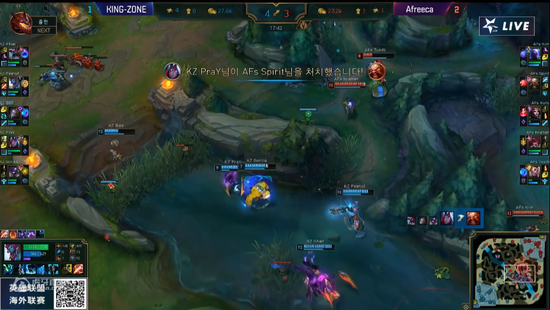 LCK季后赛第一轮在八月十五号下午四点准时开启,由AFS和KZ进行BO5的对决来争夺第二轮的名额,最终AFS三比一击败号称“内战幻神”的KZ获得第二轮的门票。