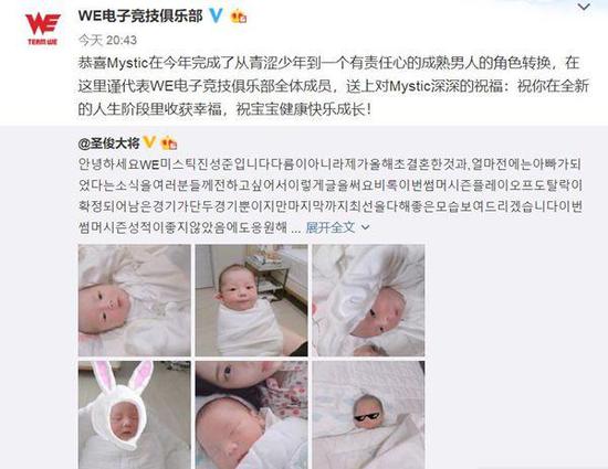 近日英雄联盟WE战队ADC选手Mystic微博公布了一个重磅消息,我们的大舅子当爸爸了,是个男孩儿!