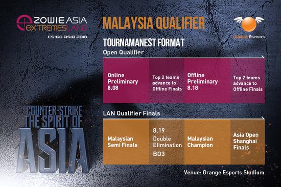 2018极限之地CS:GO亚洲公开赛于7月9日全面启动,各赛区预选赛已陆续开始。马来西亚赛区已于8月8日完成了线上预选赛,将于8月18日开启线下预选赛,19日,将决出马来西亚赛区冠军获得亚洲杯的门票。