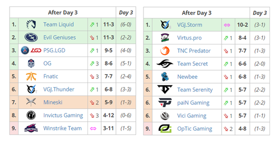 三支北美战队的发迹并非毫无踪迹可寻。OpTic在SuperMajor与ESL伯明翰的表现都非常抢眼——如果不是大魔王VP给他们来了两次当头一棒,OpTic就将取代VGJ.T的直邀名额。至于EG,事后诸葛亮地来一句,我真的低估了TS9这个比赛的重要性。按照往年的经验,TI前最后一个线下赛的第一名都具有冲击冠军盾的实力,何况是在TS9三比零完胜Fnatic的EG。最后一个VGJ.S,他们既然在TI预选赛中力压EG和OpTic,一切便不言而喻。