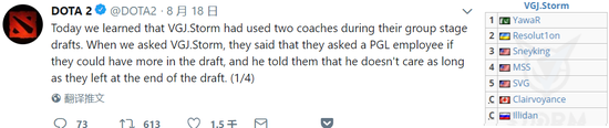 说了那么多,如果要给这支EG定性,差不多就是上一个比赛的冠军打热了他们的手感,外加Sumail重返中路的冲击力特别强劲。但如果想拿TI冠军,单凭这两点绝对不够。看到对阵表的时候,不少玩家都觉得胜者组下半区是在保送EG进前三。然而笔者就是要唱个反调——EG能不能赢秘密都是问题,赢了秘密多半也要被VGJ.S锤下去。不过,这也并不意味着我就看好VGJ.S。这是因为,他们在小组赛一个对战房塞两个教练的行为严重违反了比赛规则(当然,VGJ.S说自己得到了PGL的许可,但今年的对战房没有录像)。被罚70秒备用时间已经很给面子了,真要罚应该罚一个Ban人名额。不过,看不看好VGJ.S都没用,因为分组摆在那里。打赢OG和EG后,VGJ.S最少也是季军。羡慕吗?要怪就怪NB和VG太不给力。