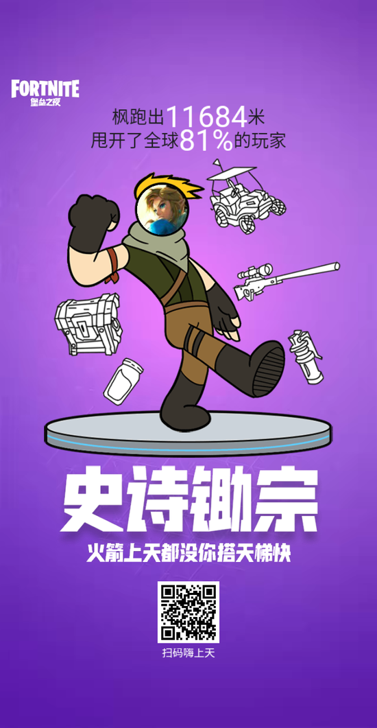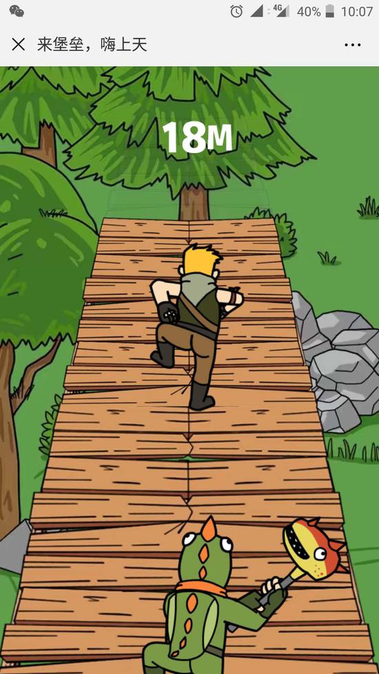 在当天的微信朋友圈和群聊里,《堡垒之夜》推出的嗨上天H5也频受玩家欢迎。这款H5把《堡垒之夜》最核心的“搭板子”技术进行了浓缩展示,务必把每个玩家迅速培养成舞铲人群的宗师。只要板子搭得好,玩家不仅能从地面一直嗨上天玩到太空,更让玩家在朋友圈秀得一手好舞姿,把《堡垒之夜》的魔性和快乐彻底展现。