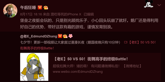 只要玩家在这四大战场的评论中,就会在15分钟之内收到堡垒官博的在线互动。这是一场时间与反应的战斗。堡垒官方用十分机智的形式,为玩家做了一次创新安利,不仅让玩家感受到《堡垒之夜》的人气,更能充分体会《堡垒之夜》魔性、会玩、快乐智商的游戏特色。