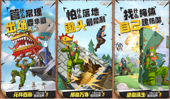 用直观欢乐的形式,去安利游戏玩法,对于传统网游推广来说多少有点“不正经”。但对于堡垒却毫无违和感,堡垒就是这样一款让玩家放飞自我、脑洞大开的游戏。在之前也曾有全套“锄宗宝典”,用搞笑海报的方式介绍游戏玩法。多方面看出《堡垒之夜》确实把“会玩”二字把控得相当精准。