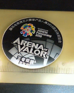 而双色防伪荧光油墨印刷技术则让纪念章在紫光灯的照射下呈现电竞经典红蓝配色;更让人叹为观止的是将三款项目的英文名微缩到2个毫米左右,高精度雕刻的工艺,防伪微缩文字技术,镜面无边框造型等细节都在向三款亚运会电竞表演项目致竞无限。