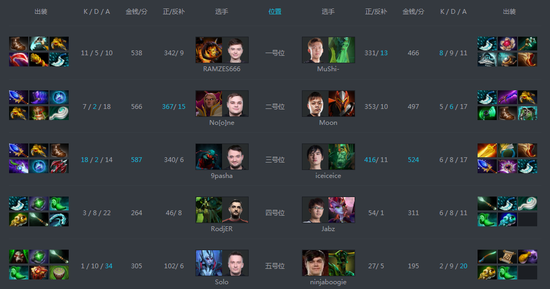 第二局Noone的中单骨弓在对线期连续两次击杀了同路对手蓝猫,Mineski从对线期开始就失去了所谓的希望。经济领跑的骨弓不仅很快带队拔光了他们的外塔,还在团战中随意收割他们的生命。经过两次崩盘的肉山团,再无一战之力的Mineski结束了自己的Ti8之旅。