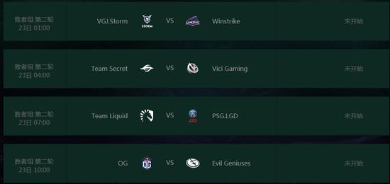胜者组第二轮的比赛将在败者组第二轮结束之后进行。分别是LGD和Liquid的巅峰对决以及OG和EG的宿命之战。
