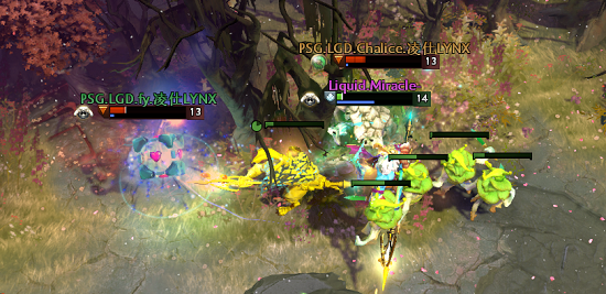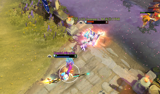LGD与液体的第一局比赛,液体的双中套路一度给Maybe造成了不小的麻烦。但绝活毕竟是绝活,12分钟,等级起来的Maybe在中路完成了对奇迹哥的单杀。而在此之前,他用同样的连招也将Kky的巫妖送回泉水。中路被Maybe打通关,液体众人试图跟着MC的小鹿找点节奏。不得不说,MC的个人能力比VGJ.S的Sneyking强了不止一个档次。上路的那波三杀,MC将小鹿在前期的霸道发挥的淋漓尽致。不过,对比一下查理斯的小小,MC也只能甘拜下风。无论是那个让液体双核魂飞魄散的山崩,还是锤死奇迹哥的一记老拳,在精灵飞机的黄金发育期,查理斯顶住了液体的最强一波,并且给予了最强硬的回击。