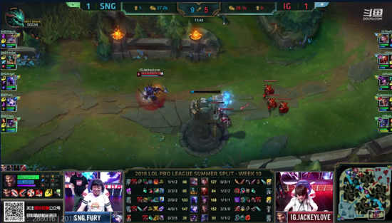 北京时间8月26日,LPL第十周最后一天第二场比赛SNG战队迎战IG战队。