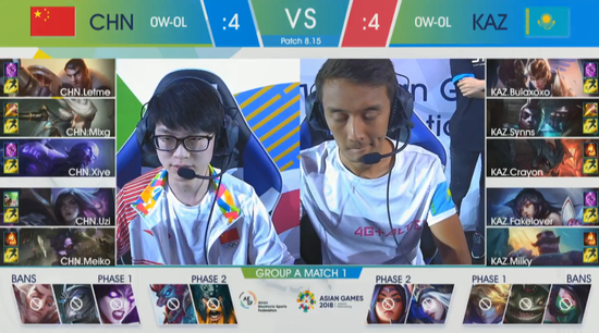 中国和韩国、哈萨克斯坦以及越南同在一组。揭幕战在中国队与哈萨克斯坦之间展开。比赛版本采用的是8.15版本。