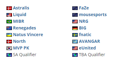 IEM芝加哥站将于11月6日开始,奖金池有250,000美金,目前参赛队伍名单为: