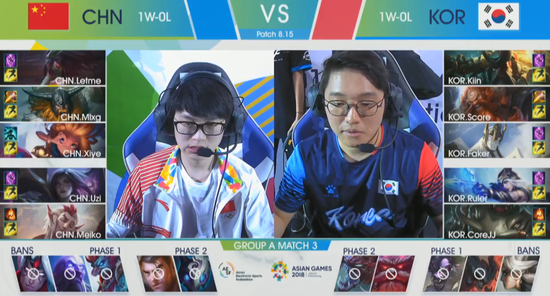 2018年8月27日13点,亚运会电子体育表演赛LOL项目比赛进行到了A组的第二轮比赛。中国团队在揭幕战上轻松战胜哈萨克斯坦团队之后,迎战本次亚运会最强劲的对手韩国团队。