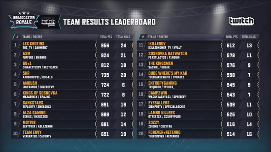 Twitch与PUBG Crop合办的全球实况邀请赛于太平洋时间9月3日落下帷幕,最终由来自比利时的主播THZ和法国主播Dahmien7组成的欧洲队伍Les Krotins以24个击杀,956的总成绩夺冠,成功获得55000美元。