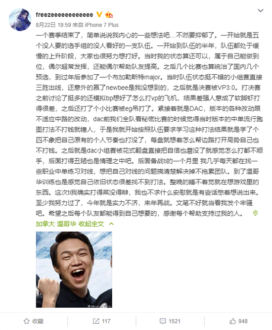 第五点,极其重要的改动,更是凝聚了冰蛙的艺术与智慧,也从那个时候,二月十六日开始,DOTA2的格局也因为这个改动有了完全不一样的变化和格局。看似是对中路的SOLO的看重,却其实仍然剑指提速。颇有些“醉翁之意不在酒,在乎山水之间也”的意思。辅助难以游中,让中路能更平稳的发育,个人实力的偏颇直接决定了一场比赛的格局。也正是因为这个改动,中单个人实力强的队伍逐渐升温,例如VP的noone,敏锐嗅觉到版本对于类似于自己个人实力强的选手以及节奏快战队的青睐,接连在二月份ESL ONE,三月份布加勒斯特豪取桂冠,并且依靠这版本的不断提速,VP在TI8之前的各大Major一直保持着极强的统治力。当然,中单个人实力强的选手例如MAY皇,奇迹哥,MIDONE,也接连受到版本福泽,强者更强,在版本的风口浪尖中戏耍的风生水起,不尽如人意的也逐渐打出了起色。虽然LGD有些慢热,但是细水长流,在后面的Major和TI的舞台上作为中国战队的代表终究还是站了出来,为中国赢得世界的尊重。当然,大浪淘沙,有站出来的就有比下去的,代表而言就不得不说VGJT的中单。其本人在TI8后也发文表示,自从中路河道改动之后一直不适应版本,难以找到自己的节奏。原文如下: