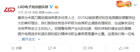 目前我们已经与@LGD电子竞技俱乐部 就人员纠纷一事达成和解,今后我们也将共同为DOTA2在国内的发展而不懈努力。