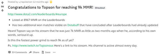 去年Topson的观众发帖纪念他突破九千分,而在那两个月前,Topson刚打到七千分