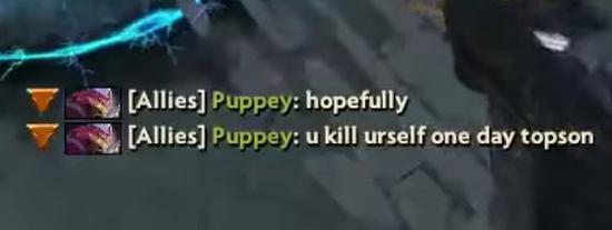 在一局天梯中,Puppey曾怒喷topson,扬言要给他一套组合拳