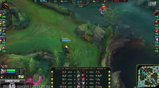 比赛来到第二局,JDG祭出狮子狗打野,而RNG选出维克兹中单,比赛开始双方打野常规开局。在比赛的前期,JDG中野发挥优秀中路瑞兹收获三个人头初期有着巨大的领先,好在RNG有及时的变节奏通过转线推塔断掉JDG节奏,并将瑞兹接连击杀,挽回劣势。