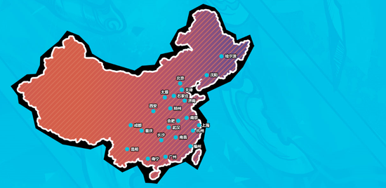 2018 《CS:GO》秋季赛首次登陆全国16个主要城市(上海,北京,石家庄,杭州,济南,广州,成都,南京,哈尔滨,郑州,武汉,重庆,南昌,长沙,西安,合肥)。