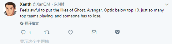 他接着又发了一条推文做补充:“把像Ghost,Avangar和Optic这样的队伍排到第十名以后,我感觉糟糕,只是有太多顶尖队伍,总有人不得不输。”