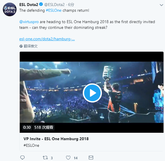 没有DOTA2比赛可看的第四天,想它。TI8结束,新赛季未开,选手转会也还在秘而不宣的阶段。国外知名电竞赛事主办方ESL One在今天公布了他们新赛季首个赛事ESL One汉堡站的第一支直邀队伍。