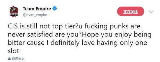 菲律宾与俄罗斯的参赛选手分列二、三名。菲律宾这个国家对DOTA其实是相当痴狂的,这里就不多叙述了,据说在DOTA1剩余不多的市场中,除了中国之外就是菲律宾了。而俄罗斯玩家是DOTA2中最大的一个群体,他们对于TI8只有这么一点参赛人数肯定有话要说:包括俄罗斯在内的整个独联体地区的预选赛只有区区一个TI8名额,许多战队要挤独木桥。而北美赛区战队并不是特别多,却有3个名额,不禁让人怀疑西方敌视俄罗斯的一贯作风。看看帝国的态度,便可知一二。