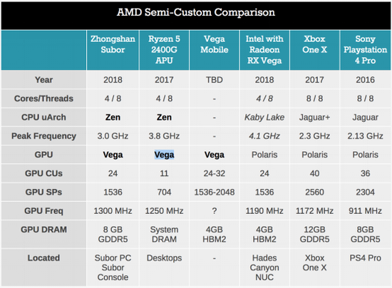 关于这颗AMD定制芯片我们了解到,它在图形性能方面要比GTX 1050强百分之三十,可以畅玩高品质3A游戏大作,已经基本达到了VR Ready的规格。外媒Anandtech也公布了这颗定制芯片的信息,是由一颗Ryzen架构的4核8线程,主频3.0Ghz的AMD处理器和一颗Vega架构,拥有8G GDDR5高带宽内存,主频为1300 Mhz,共计1536颗流流处理器的GPU组成。