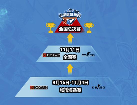 完美世界全国高校联赛海选赛每个城市冠军晋级全国赛(其中高校联赛《DOTA2》项目,北京、上海、广州、济南、武汉、杭州、成都、长沙、郑州、南京为冠亚军同时晋级全国赛)