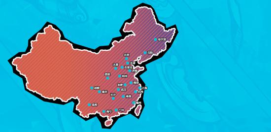 2018 《CS:GO》秋季赛首次登陆全国16个主要城市(上海,北京,石家庄,杭州,济南,广州,成都,南京,哈尔滨,郑州,武汉,重庆,南昌,长沙,西安,合肥)。