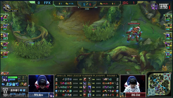 中期,FPX急了,24分钟主动逼大龙,但是团战处理太差了,JDG进场双方5vs5,JDG直接团灭FPX,拿下大龙。尽管大龙没能帮助JDG上高地,但是还是拿到了5000的经济优势。