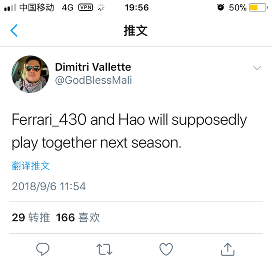 而此前关于MB组合是否会再现江湖的消息的可能性则是因此大大打了折扣,不仅如此,Mars海外商务经理发布推特称,430与Hao很有可能在新赛季一起打。这也印证了iG藏马那条“有两位此前在iG.Dota2分部的老将都会在这个赛季复出”的微博,可能性还是比较大的。不过具体情况最终如何,将在哪支队伍复出,目前还难以确定。