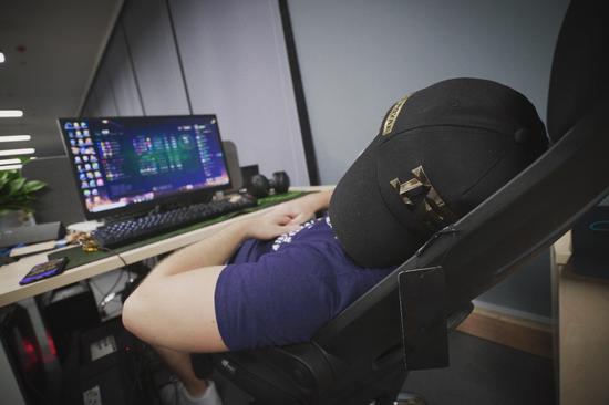开营第一天就好像开学第一天,大型线下网友见面会为选手们提供了足够的新鲜感,走进RNG上海新基地也为发朋友圈提供了不少的素材。然而与开学第一天只需开开会、领领书、摸摸鱼就能结束不同,体验营的行程从早上十点一直持续到晚上十一点半,比赛与训练安排得密密麻麻。在首日晚上,就已经有选手表示累了不想打了。还有人直接用行动表达想法,生无可恋的姿态无声地宣告自己的态度。