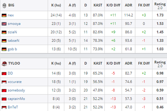 在昨晚的CSGO FACEIT Major新传奇组比赛中,TYLOO战队不敌BIG战队。