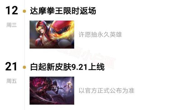 王者荣耀9月的计划就是这样,但是上线时间仅供参考。白起新皮肤一旦上线,与之联动的嬴政新皮肤也会相继推出,预计嬴政新皮肤将在10月份上线。