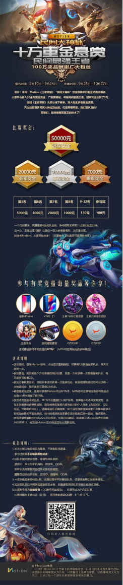 Motion民间大神杯《王者荣耀》联赛即将启航,这是一场关乎民间电竞事业的焦点战役,对所有参与联赛的战队来说,也是一次全新的机会与考验。热血竞技尽享快感,精妙配合默契作战!9月11日,让我们聚焦民间大神杯,共同见证民间王者诞生全过程!赶快加入报名,随时开启你的激情团战——//dashenbei.motiong.com