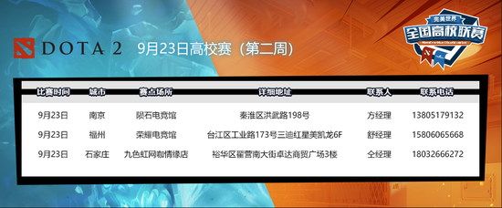 本周日全国高校联赛DOTA2秋季赛将来到南京,福州,石家庄 , 三座城市都有着大批热爱DOTA2的高校玩家,在这个周末,我们以DOTA2的名义相会。谁能战胜其他战队,获得赛区冠军?谁将代表所在城市高校,出战全国赛?