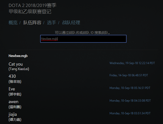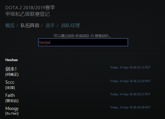 吉隆坡Major预选赛落下帷幕,VG、Team Aster与PSG.LGD杀出重围,获得了正赛的门票,而一众新队与经历了人员变动的老牌俱乐部则是遗憾无缘主赛事。此后有细心的水友发现,在DOTA2 2018/2019赛季甲级和乙级联赛登记页面,Newbee俱乐部的人员名单再度进行了调整。