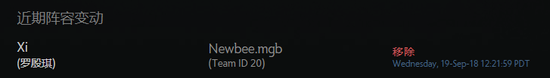 原本在MGB战队与430携手复出的老将Xi移除在了人员名单之外。