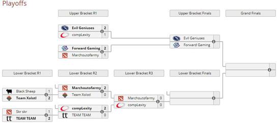 再看北美赛区就没这么多幺蛾子了。EG和瑞士鲁迅的新队Forward Gaming这两支公认的北美领头羊拿到两张门票,明天凌晨他们会进行排名赛。而临时换上Fear替补参赛的coL战队也打进了败者组第三轮,正在和一支名为Marchoutofarmy的队伍争夺北美赛区的最后一张门票。虽然这只Marchoutofarmy是新赛季的一支新队,不过队员却有Moo、Bryle、Forev、March、MiLAN这几个知名选手,能打到这个地步也属正常。
