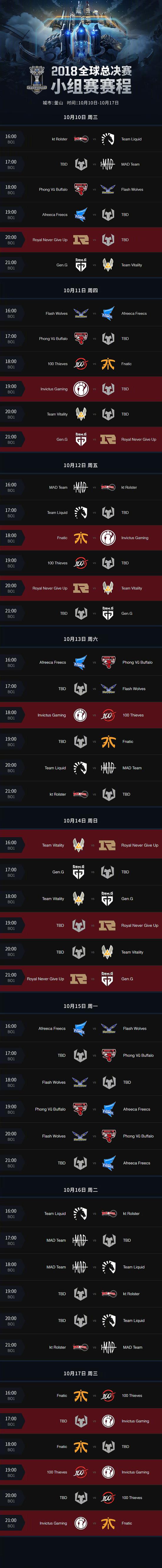 2018年9月23日,英雄联盟官方进行了S8全球总决赛的抽签仪式。随后,官方放出了入围赛与小组赛的赛程。