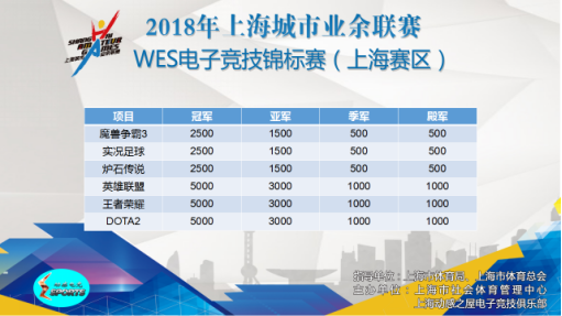 1.在“2018上海城市业余联赛WES电子竞技锦标赛(上海赛区)”决赛中获各单项比赛(团队类、个人类)前4名的队员,授予业余一级运动员证书;